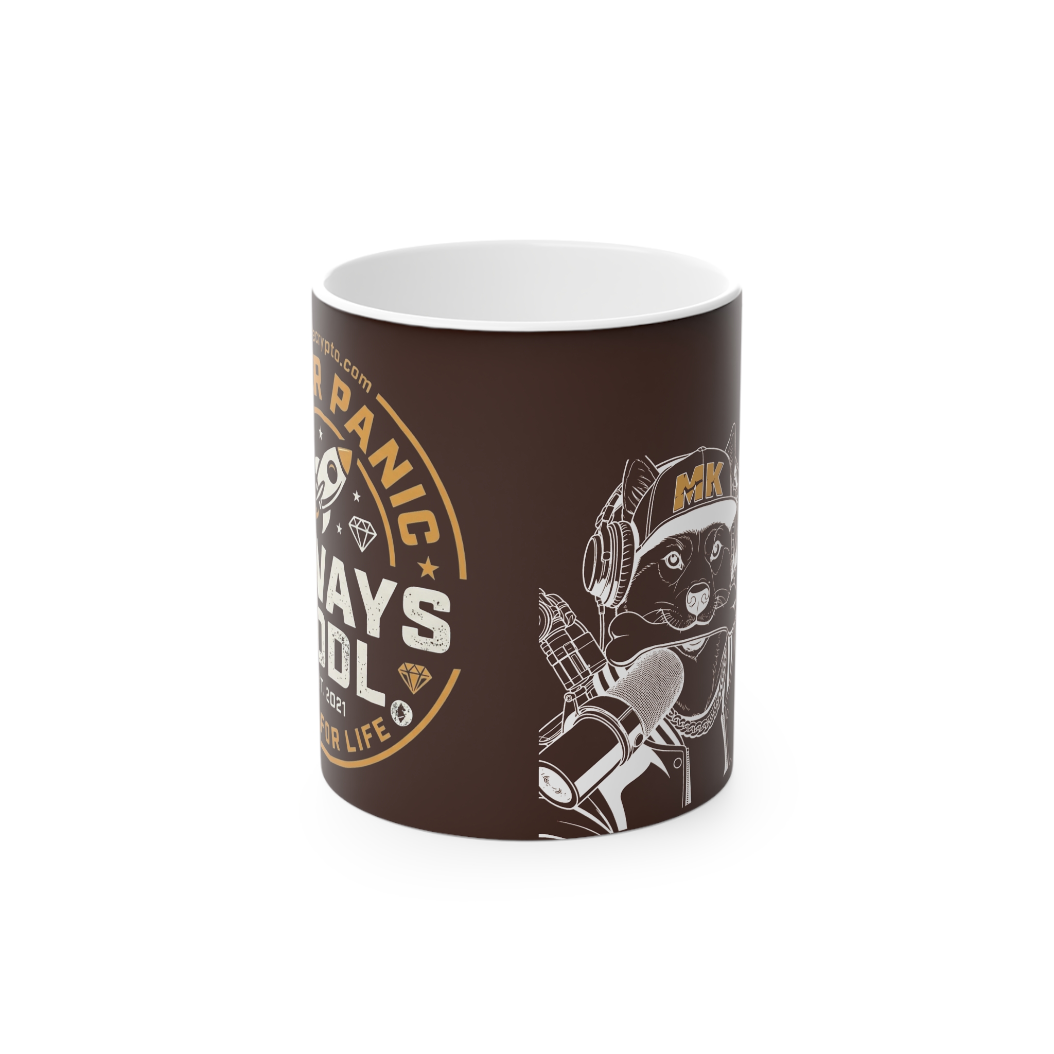 Magic Mug — ‘Never Panic, Always Cool’ Space Cat Heat-Change Coffee Mug